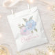 These favor bags feature pink and blue flowers and a place to personalize with a name.