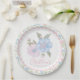These paper plates feature pink and blue flowers on a white scalloped background with a place to personalize with a name.