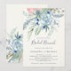 Diese stilvollen Brautbrunch-Einladungen sind mit zartem, zartem Blau und Rosa Aquarell mit vielen Blätter und Akzenten gestaltet. Der Hintergrund ist wie schlichtes Aquarellpapier gehalten. Wir haben Kunst aus LABFreations benutzt.