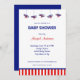 Blauer und roter Streifen Baby Dusche Einladung.