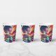 Blauer und roter Superheld-Animateur mit Kapitän-Geburtstagsparty-Tassen.