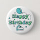 Niedliche Hand gezeichnet blau und grün Happy Birthday Knopf mit Ballon und Geburtstagstorte.