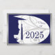 Eine Silhouette einer jungen Dame in ihrer Kappe und in ihrem Kleid. Im Hintergrund werden Blumendesigns verwendet. Die Rückseite ist ein blauer Hintergrund mit weißen Buchstaben für die Graduierungsankündigungen.