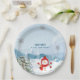 Blue Baby First Geburtstagsfeier Teller mit Aquarellkiefern mit Schneeflocken und Schneemann. Perfekter Winter Wunderland Themeneinladung zum ersten Geburtstag Ihres Babys in diesem Winter.