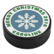 Blue and White Christmas Snowflake Hockey Puck