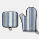 Blue and White Coastal Stripes Ofenhandschuh & Topflappen-Set