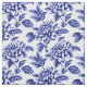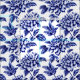 Dieser Stoff ist mit einem blauen und weißen Dahlia-Blume-Toile-de-jouy-Muster versehen.