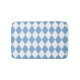 Stylish argyle pattern blue and white bath mat. This is a modern take on the retro golf pattern, with a weathered speckled effect, to look like it's aged.