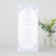 This soft Delft blue floral wedding program is designed in a refined blend of chinoiserie and French toile de Jouy style. Delicate botanical illustrations frame an elegant oval arch layout, creating a timeless and romantic presentation. The program includes space for the ceremony order, wedding party details, and a thoughtful thank you message, making it both beautiful and practical for your special day.