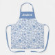 Blue and White Floral Custom Name Botanical Bold Schürze