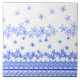 Blue and white floral design, lace effect.