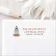 Elegantes Holiday Return-Adressetikett mit handgemalten Aquarellen Blau und Weiß Ingwer mit Feriendekorationen.