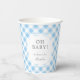 Blue and White Gingham Pattern Oh Baby Boy Dusche Pappbecher