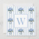 Blue and White Hydrangeas on Stripes Monogram Mitteilungskarte