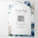 Blue and White Peony Mason Jar QR Code Hochzeit Dreifach Gefaltete Einladung