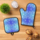 blue and white polka dot pattern on one side ofenhandschuh & Topflappen-Set