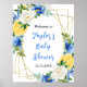 Blue and Yellow Floral Baby Shower Welcome Sign Poster