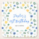 Blue and Yellow Floral Birthday Rechteckiger Pappuntersetzer