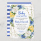Blue and Yellow Flowers Gold Frame Baby Dusche Einladung