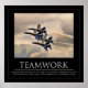 U.S. Navy Blue Angels fliegen in enger Diamantenbildung während einer Flugshow. Das Wort "TEAMWORK" und eine Definition des Wortes "koordinierte Bemühungen einer Gruppe von Personen als Team oder im Interesse einer gemeinsamen Sache".