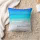 Kissen für den eigenen Wurf. Ikonische Strandszene mit vorwiegend blauen und aqua Farben. Ändern Sie den Namen einfach in Ihren eigenen Namen oder entfernen Sie ihn.