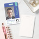 Modernes und trendiges Foto Security Abzeichen. Unser Design zeichnet sich durch ein modernes, trendiges, blaues und aquamarines Design aus. Personalisieren Sie sich mit Foto, Name, Logo, Ablaufdatum und optionaler Mitarbeiternummer. (Farben können in Anzug Ihrer Marke geändert werden).
