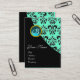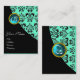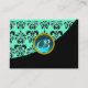 BLUE AQUAMARINE DAMASK MONOGRAMM, Turquase Visitenkarte