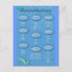Eine einfache aber schöne Grafik mit allen möglichen Aromatherapiehinweisen aufgelistet. Es erzählt Ihnen, welche Aromen und ätherischen Öle für Schlaflosigkeit, Insektenstiche und Bisse, Depression und sechs andere zu verwenden. Enthält Basilikum, Zitrone, Bergamot, Teebaum, Zimt und vieles mehr. Wir bieten diese als Flyer-, Postkarten- und Grußkarte an, damit Sie sie an Ihre Kunden senden können, sowie als Poster in voller Größe. Sie wählen aus, ob Sie gewollt haben, es zu rahmen oder nicht. Auch im Lavendel Sandsteinhintergrund erhältlich.