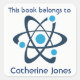 Blue Atom Science Design Buchzeichen Sticker mit anpassbarer Text- und Hintergrundfarbe.