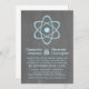 Niedliche und nerdige Atomic Chalkboard Wedding Invitation mit einem einfachen Atomsymbol in hellblau auf einem Chalkboard-Look Hintergrund. Diese geeky und lustige Hochzeitseinladung ist perfekt für das wissenschaftliche Fan-Paar! Einfach anzupassen, fügen Sie einfach die Details Ihrer Hochzeit in den Bereichen zur Verfügung gestellt. Klicken Sie auf "Anpassen", um weitere Personalisierungsoptionen zu erhalten.