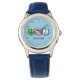 Kinderuhr aus Edelstahl mit blauem Lederarmband
