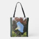 Rain or shine, brighten any day's errands with this tote bag featuring a tiny, living umbrella of spectacular blue-sky petals against a backdrop of autumn leaves and grey clouds. Use it to carry anything from groceries or garden supplies, to a quick change of clothes for the gym or your latest treasures from the local nursery or flower shop. This versatile tote also makes a beautiful gift for anyone in your life who loves flowers!