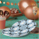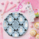 Set des Party-Tisches mit koordinierten Tellern mit einem Muster von fröhlichen, lächelnden Geistern und preppy schwarzen Bandbögen auf einem weichen Baby-blauen Hintergrund. Diese kleinen Geister werden Ihren Tellern ein Lächeln geben, um sie individuell an Ihr Event anzupassen. Sie sind das perfekte Halloween Baby Boo für die Babyduschen von "Fast Due" im Oktober.