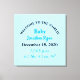 New Baby Boy Blue Willkommen im World Baby. Personalisieren Sie die Angaben mit dem Namen und der Geburtsstatistik des Babys in blauem Text und das Geburtsdatum in schwarzem Text. Schöne Dekoration im Kinderzimmer. Original Designs von TamiraZDesign.