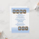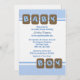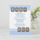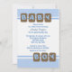 Blue Baby Boy ist eine blau grenzende Baby Duscheinladungskarte mit schwindelerregenden blauen Briefen auf braunen, abgerundeten Plätzen, ideal für junge Jungs. © Morning 6