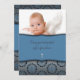 Elegantes blaues Baby Foto Taufen Einladung Vorlage.