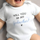 Frag dem, den du will, die Patenmutter deines kleinen Jungen zu sein, mit diesem super niedlichen Kinderkarosserievorschlag. Lassen Sie Ihren Jungen diese tragen und nutzen Sie sie, um die Frage "Werden Sie meine Patenmutter sein" in einer Kombination aus Blau und Schwarz Pop!