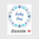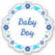 Dieses phantastische, geformte Aufkleber-Blatt zeigt ein digitales Kunstbild einer Gruppe von Blume und Schmetterlingen, von denen jeder einen blauen Farbton aufweist, um einen kleinen Jungen zu repräsentieren. Zu den Blume zählen Dahlias, Wasserlilien, vergessen Sie mich nicht und Chrysanthema. Die Blüten und Schmetterlinge sind kreisförmig angeordnet, und es ist ein eigener Text im Kreis vorhanden, sodass Sie ihn, wie Sie ihn auch immer gewollt haben, personalisieren können. Dieses Design ist perfekt geeignet, um das Geschlecht des Kindes zu enthüllen, eine Babydusche oder einen Neugeborenen zu feiern.