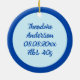 Dieses phantastische Geburtshaus-Ornament zeigt ein digitales Kunstbild einer Gruppe von Blume und Schmetterlingen, die jeweils einen blauen Schatten tragen, um einen kleinen Jungen zu repräsentieren. Zu den Blume zählen Dahlias, Wasserlilien, vergessen Sie mich nicht und Chrysanthema. Die Blüten und Schmetterlinge sind kreisförmig angeordnet, und es ist ein eigener Text im Kreis vorhanden, sodass Sie ihn, wie Sie ihn auch immer gewollt haben, personalisieren können. Dies macht ihn zu einem idealen Geschenk für Familienmitglieder, die einen Neugeborenen feiern oder die erste Weihnachtsfeier für das Baby feiern. Auf der Rückseite ist noch mehr benutzerdefinierter Text, sodass Sie die Geburtsdetails angeben können.