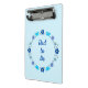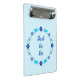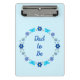 Diese phantastische gemusterte Miniklipboard zeigt ein digitales Kunstbild einer Gruppe von Blume und Schmetterlingen, die jeweils einen blauen Schatten tragen, um einen kleinen Jungen zu repräsentieren. Zu den Blume zählen Dahlias, Wasserlilien, vergessen Sie mich nicht und Chrysanthema. Die Blüten und Schmetterlinge sind kreisförmig angeordnet, und es ist ein eigener Text im Kreis vorhanden, sodass Sie ihn, wie Sie ihn auch immer gewollt haben, personalisieren können. Dieses Design ist perfekt geeignet, um das Geschlecht des Kindes zu enthüllen, eine Babydusche oder einen Neugeborenen zu feiern.