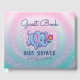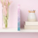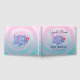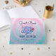Niedlicher, blauer Elefant des Cartoon mit rosa Blume über rosa und blauem Hintergrund mit weißen Funken