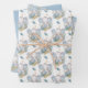 Eine Auswahl an schönen Verpackungspapieren für Babygeschenke für Junge oder Mädchen. Niedlichen kleine Tiere vom Cartoon und ein schlichtes Blatt mit koordinierender Farbe sind im drei Set mit Papier enthalten