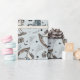 Dieses Blue Baby Goth Floral Rocking Horse Wrapping Paper zeigt handgezeichnet Abbildungen eines Vintagen Holzrockpferdes mit französisch-blauen Details, Rose in der passenden Blues und Cremes, Wildblumen, Blätter, Schwarzbats, Spinnennetze und funkelnde Sterne, alles auf einem weichen französischen Hintergrund. Ideal für gotische Babyduschen oder zu jeder Gelegenheit, um den kleinen Jungen während der spärlichen Halloween-Saison zu feiern.