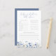 Mit diesem Blue Baby In Bloom Baby Predictions and Advice Game können Sie Ihr Baby mit einer herzlichen Touch in einer blühenden Babydusche unterhalten - eine niedliche und sinnvolle Art, Ihre Gäste einzubeziehen! Diese hübsche, blaue, blumengeschmückte und mit Wildblumen geschmückte Hotelkarte dient den künftigen Eltern als Sake. Die Gäste können ihre besten Wünsche und lustige oder nachdenkliche Ratschläge in diesem ansprechenden Baby-Vorhersagespiel teilen und so bleibende Erinnerungen während Ihrer Babydusche schaffen. Eine perfekte Ergänzung zu Ihrer Sammlung von Babydusche-Spielen, ergänzt sie Ihr Baby wunderbar im Blütenthema.