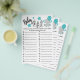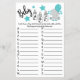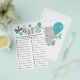 Blue Balloon Elephant Baby ABC Baby Shower Game Card. Spielen: Notieren Sie sich einen Babygegenstand/-begriff, der mit jedem Buchstaben beginnt. Der erste Gast, der die Liste beendet hat, gewinnt!.