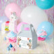 Birthday Party Supplies featuring two illustrated Hedgehogs in party hats, festive balloons, and a birthday cake with glowing candles. Set against a soft blue background with a delicate heart pattern, the design radiates warmth and celebration.