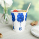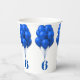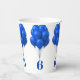 Blaue Ballons Papier Becher für ein Kind zum Geburtstag. Beinhaltet sein Alter, das sich um die Tasse wickeln wird. Jede Zahl scheint einen Haufen hellblauer Ballons zu halten.