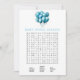 Stellen Sie sich mit diesem "Blue Balloons Watercolor Baby Shower Word Search Game" eine spielerische Herausforderung Ihrer Babydusche vor. Die Spielkarte mit einem eleganten Haufen blauer Aquarellballons lädt die Gäste dazu ein, nach Wörtern zu suchen, die mit dem Baby zusammenhängen und im Gitter verborgen sind. Die Liste der zu findenden Wörter wird am unteren Rand bequem platziert und verwandelt ein traditionelles Spiel in eine lustige, thematische Aktivität, die perfekt das einladende Party Ihres Babys ergänzt. Dieses Spiel bietet nicht nur Unterhaltung, sondern dient auch als angenehmer Eisbrecher, der den Gästen beim Vermischen und bei der Feier noch mehr hilft.