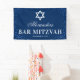 Personalisiertes Bar mitzvah Party Banner mit einem stilvollen blauen Hintergrund, Glitzer, dem Stern des david Symbols, dem Namen der Kinder und dem Datum.