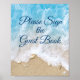 Diese Bitte unterschreiben Sie das Gästebuch Hochzeitszeichen ist Strand inspiriert und mit blauen Ozeanwellen, Strand Sand, Seesterne, Sand Dollar und Muscheln, die es perfekt für den Strand, tropische oder Hochzeit in Urlaubsort. Es ist Teil der Blue Waves Wedding Collection.